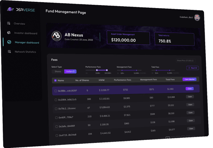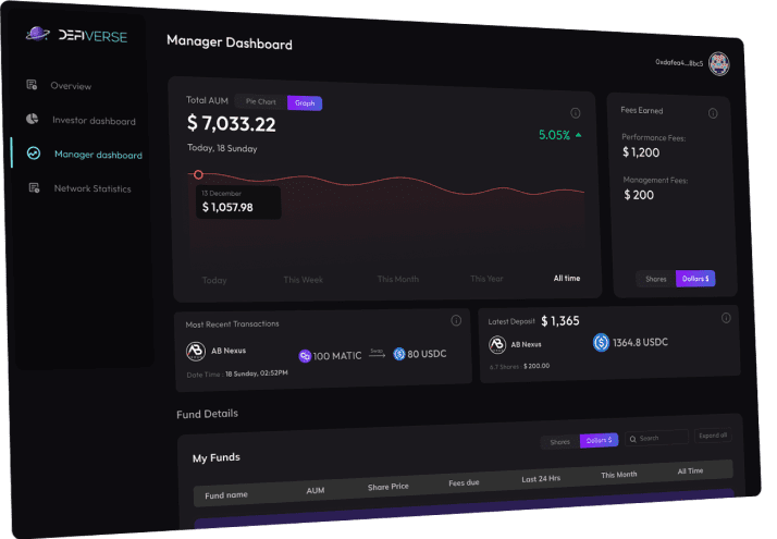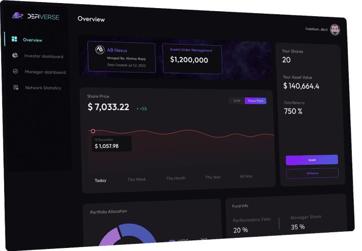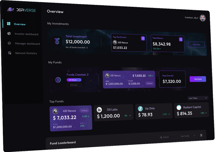 DeFiVerse is a decentralized investment platform that allows users to create, manage, and invest in crypto funds seamlessly.